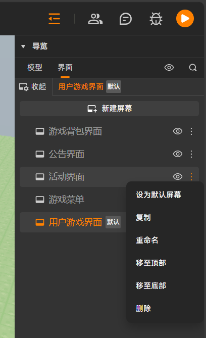 UI元素灵活放置:在每个独立的屏幕下,创作者可以自由添加、排列与调整各种UI元素(如按钮、文本框、图片等),实现高度自定义的界面布局。元素之间的层级关系清晰,操作直观,便于快速搭建出符合需求的界面效果。